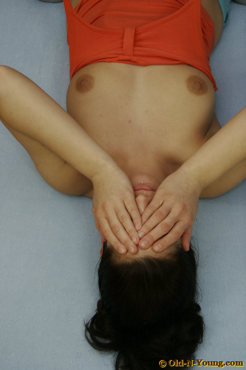 Helen starts off this video stating quite plainly that she is tired but must train and in this case that happens to involve a message by her trainer that leads to some interesting tits massaging. But he isn’t just a boobies mauler he also licks that slick little cunt before encouraging her to suck cock. Then come to full on pussy workout with his old dick pounding her good and hard until he blows his load right inside her pussy, letting just a small amount of cum drizzle out.