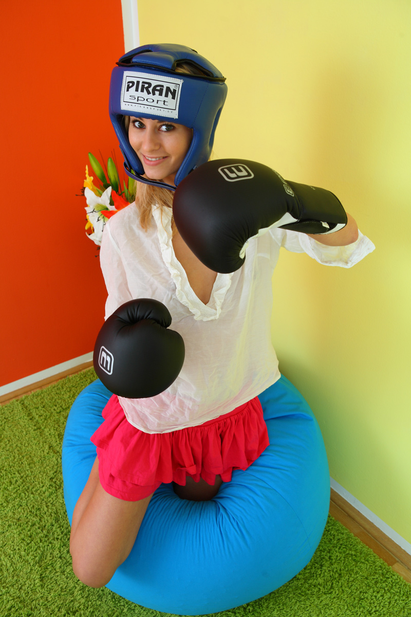 Alice is always up for new experiences, lately she had me watch her try out different sports, and i must say that she does look pretty hot in tennis uniform or in swimsuit, but what she was in the mood today was trying out how would she do as a boxing gir