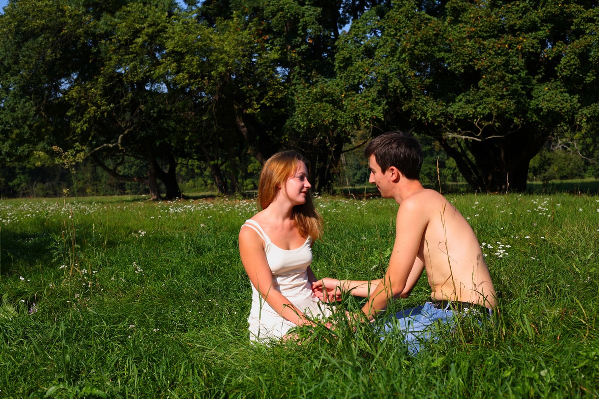 She is the picture of innocence, but this teen has some x-rated desires. Soon, she`s giving this lucky stud a blowjob and a whole lot more in the middle of this field.