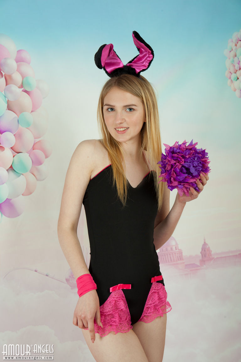 This tight blonde bunny has some smoking hot fun with stripping her clothes and playing with her flower.