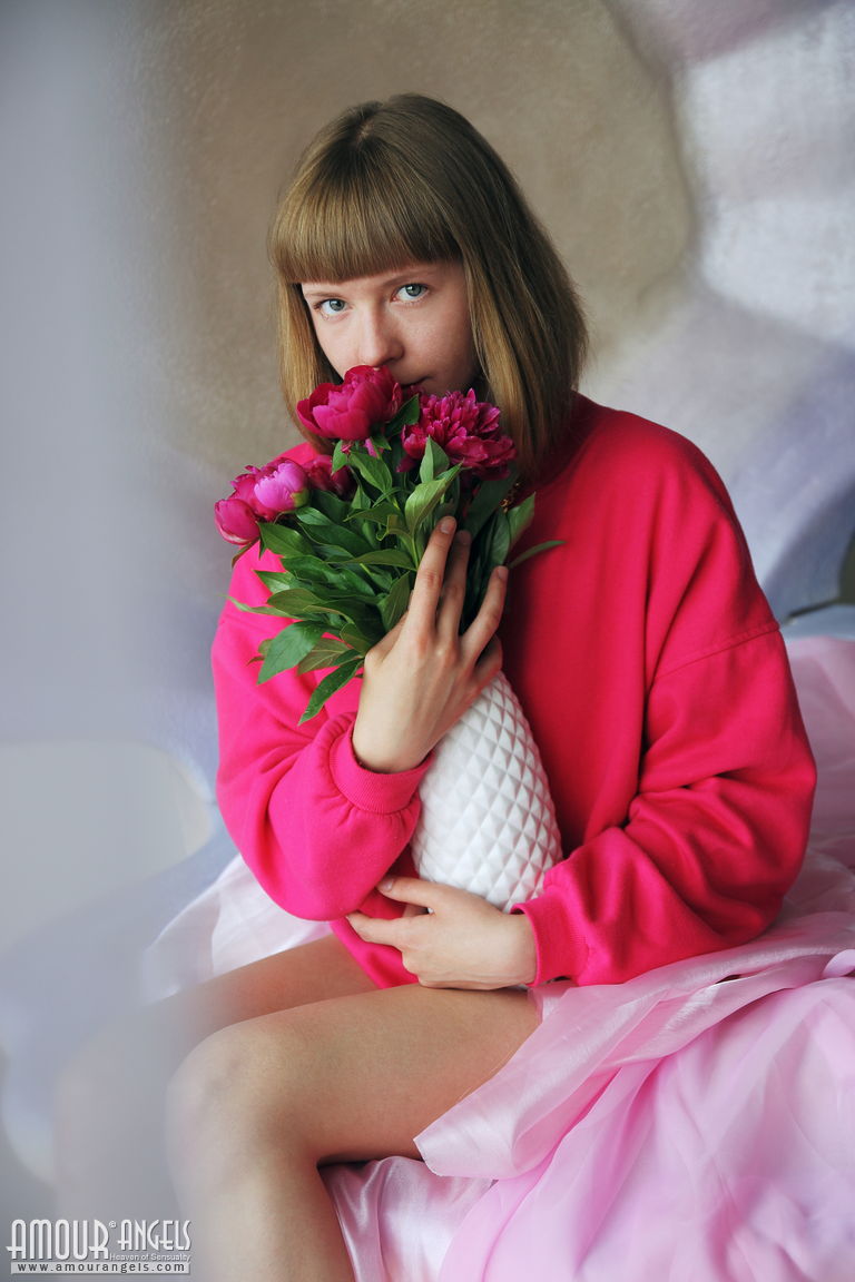 Extremely cute and beautiful teen model drops off her angel wings and shows her mind blowing teen tits.