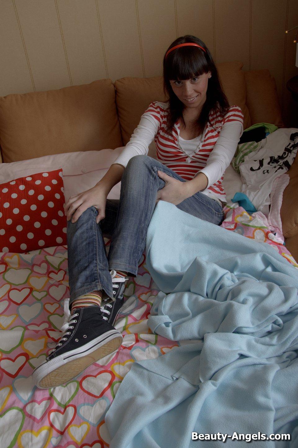 She often takes off tight jeans to masturbate. It is natural for a teen whose titties just reached b cup size and shaved beaver constantly demands a hard rod. Era treats her juicy pussy with small pink lips with different dildos because she cannot refuse