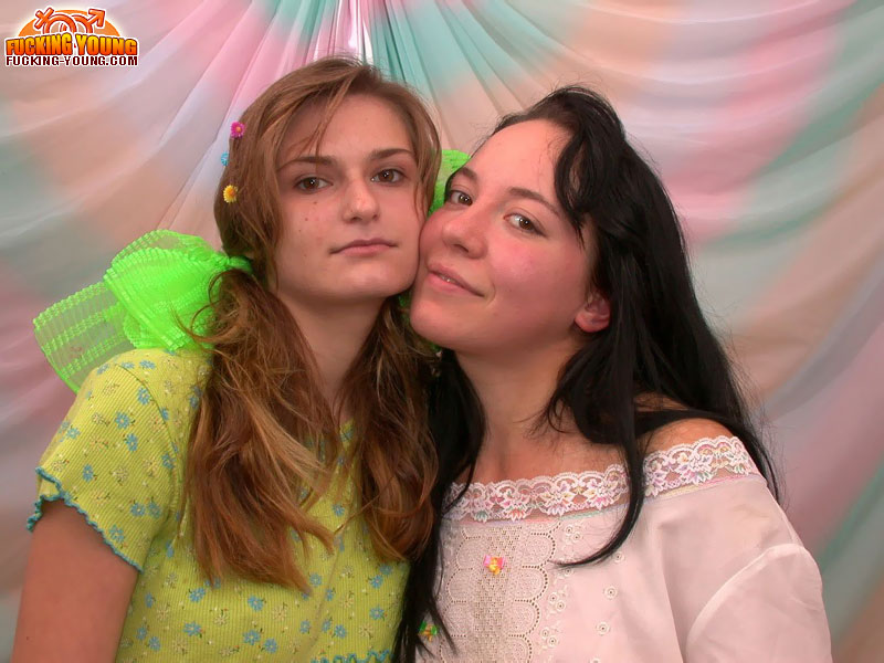Horny hot-looking teens kissing and stripping to have sex with a firm dildo