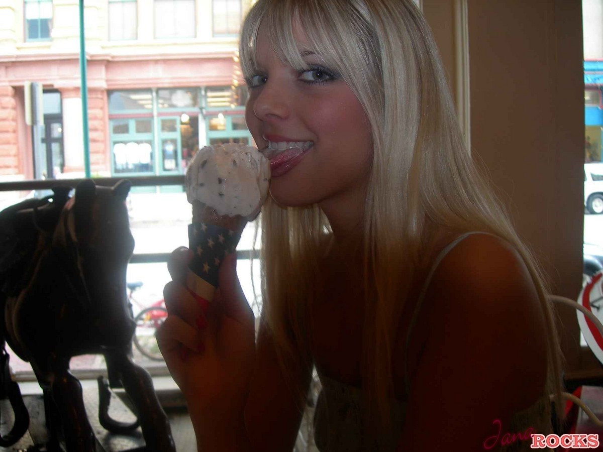 Jana shows off her oral skills with her ice cream cone