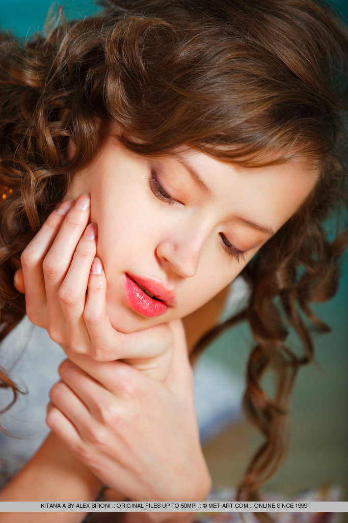 Kitana a spreads her legs and reveals her pink, shaved pussy