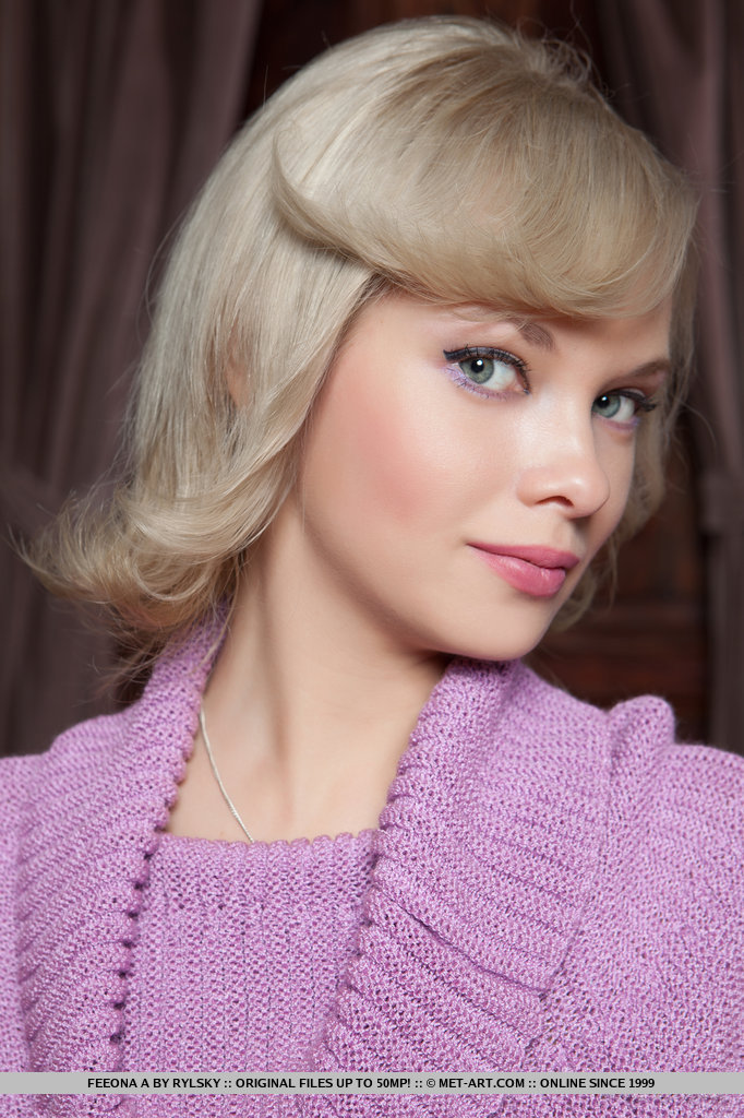 Feeona's sweet smile amplifies her girly, amateur beauty as she ditch her purple dress and flaunts her great body with pink tits, sexy legs, and smooth tight pussy.
