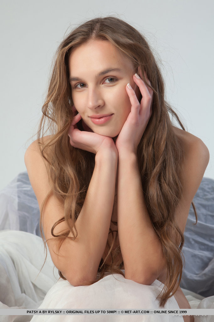 Smooth fair skin, puffy brown nipples, slim and slender body, and an alluring charming face makes patsy the perfect centerpiece inside this all white studio.