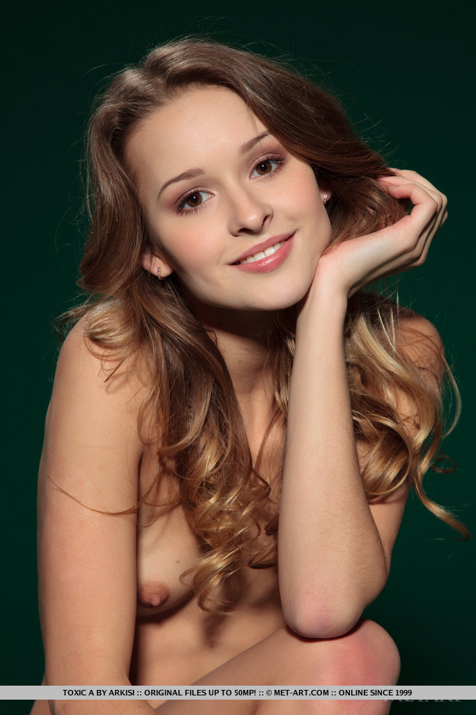 Toxic evokes a naturally delightful presence as she playfully exhibits her fresh, young body with beautiful, rosy nipples and pink juicy pussy.