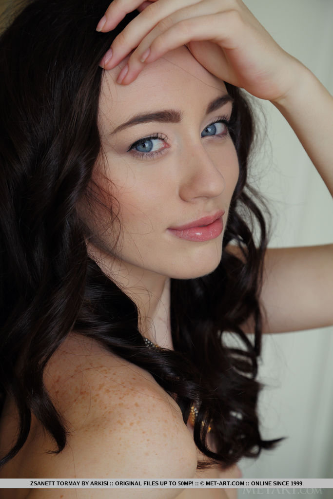 Sultry, seductive face framed by curled brown hair, a teasing smile, and lots of open, explicit poses that showcase zsanett tormay's slender build, smooth fair skin, and delicious pink pussy with puffy clit