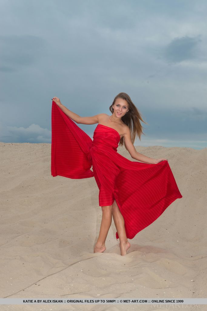 Katie a indulges her viewers in a fun and spontaneous tease, displaying her gorgeous, tight body and long, slender limbs as she poses on the sandy shore.