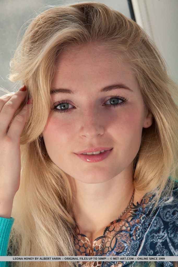 Cute and adorable leona honey, strips and bares her slender, nubile body and pink, smooth pussy by the window.