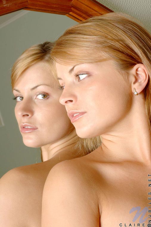 Horny teen claire checks out her firm assets in the mirror