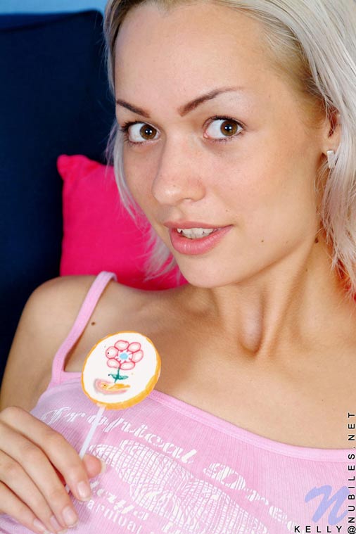 Oh man just look at this hottie licking her lolli oh so lightly like she is licking the precum from a cock