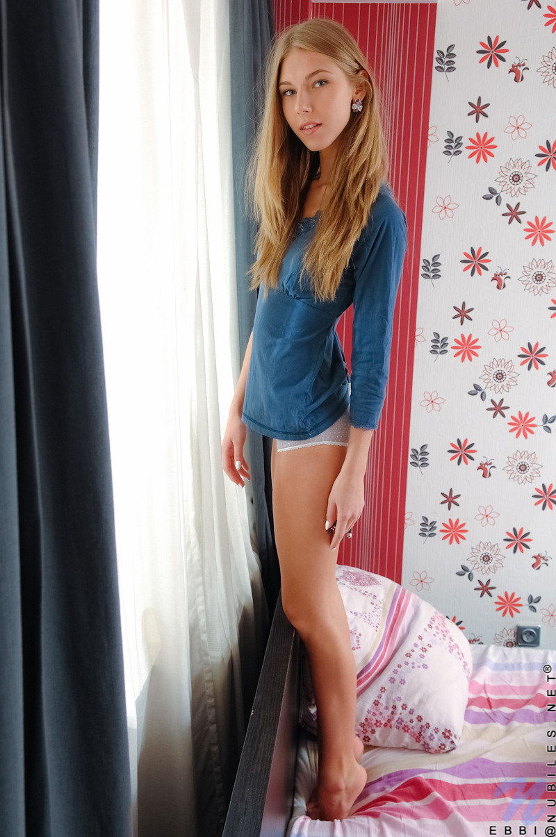Alluring nubile ebbi tauntingly slips off her cotton panties