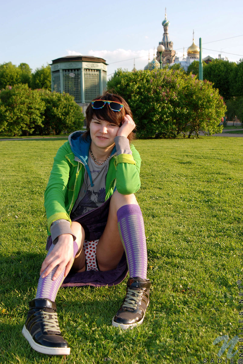 Seductive teen sadie having fun teases and poses in the summer sun