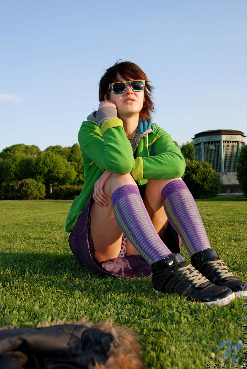 Seductive teen sadie having fun teases and poses in the summer sun