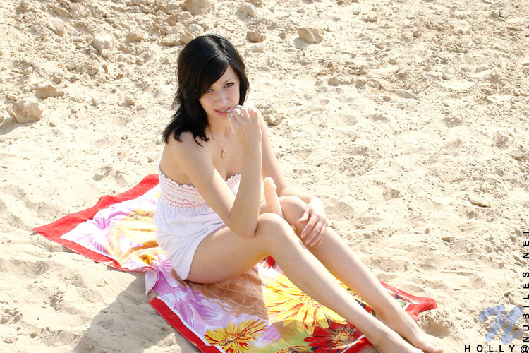 Holly in the beach getting tanned teasing with her sexy toy licking it hard