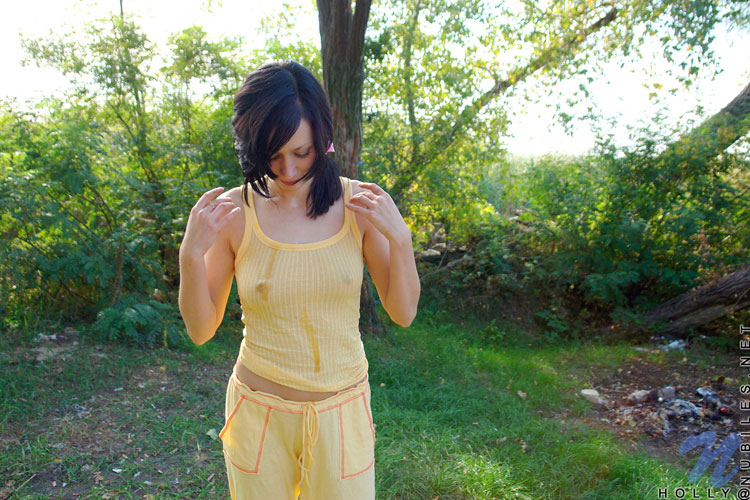 Innocent looking teen enjoys nature tripping watch her nipples showing off