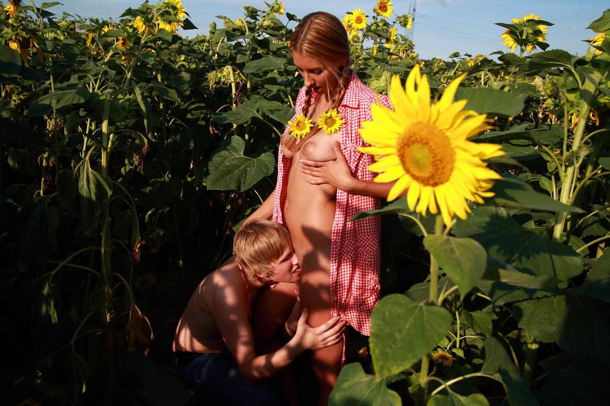 Behind the tall sunflower plants, these teens are able to hide their naughty acts. They can`t wait to have sex, but just hope that no one spots them while they`re satisfying their sexual needs.