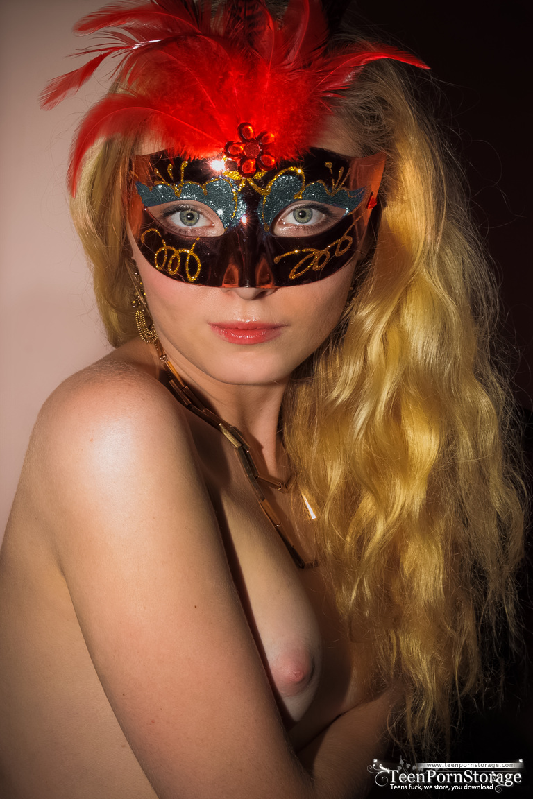 Stunning blonde undresses from under her mask to show every bit of sexy curve she has on that hot body of hers.